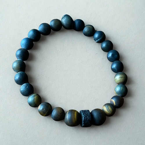 Essential Oil Bracelet, Matte Tiger Eye Beads, Black Lava Disk