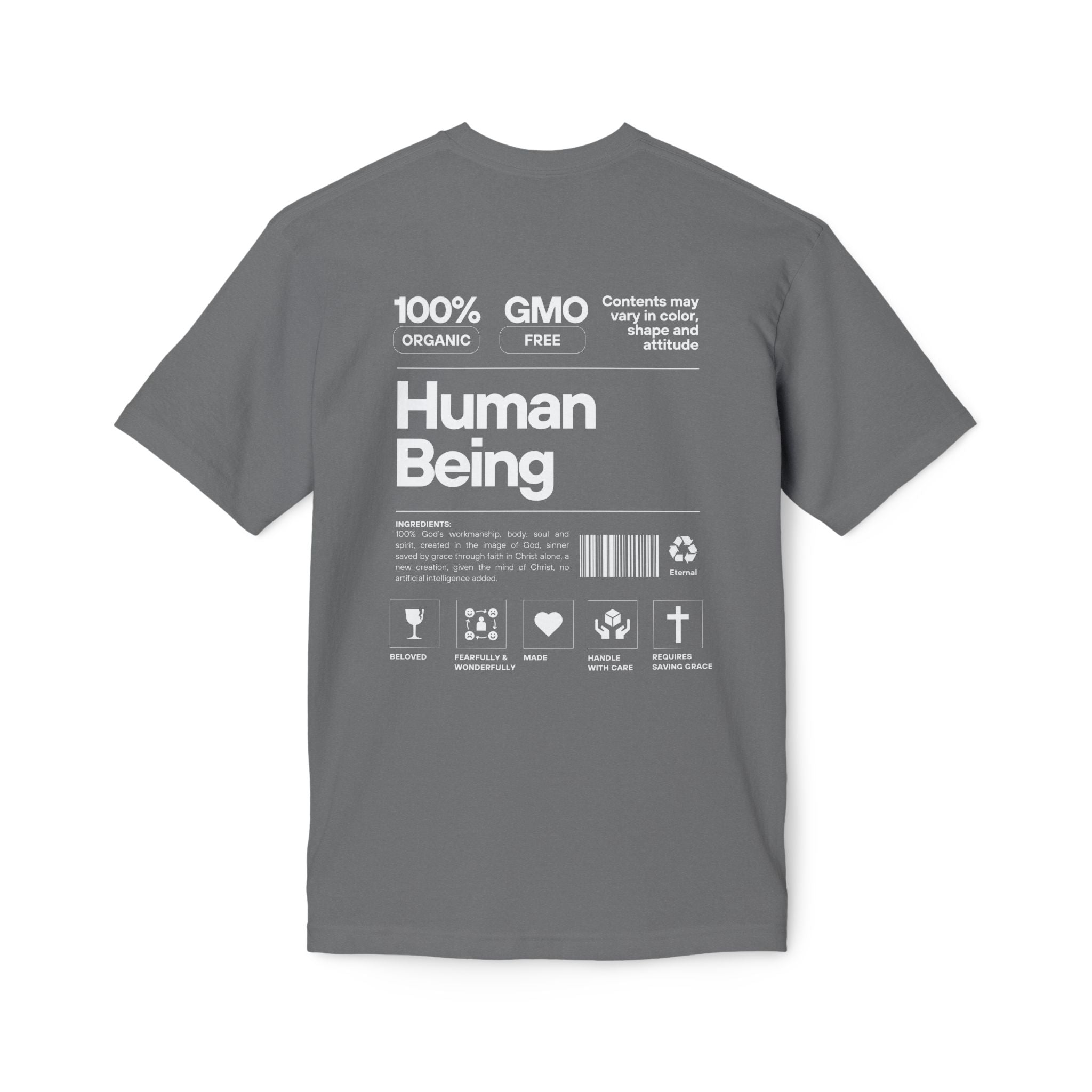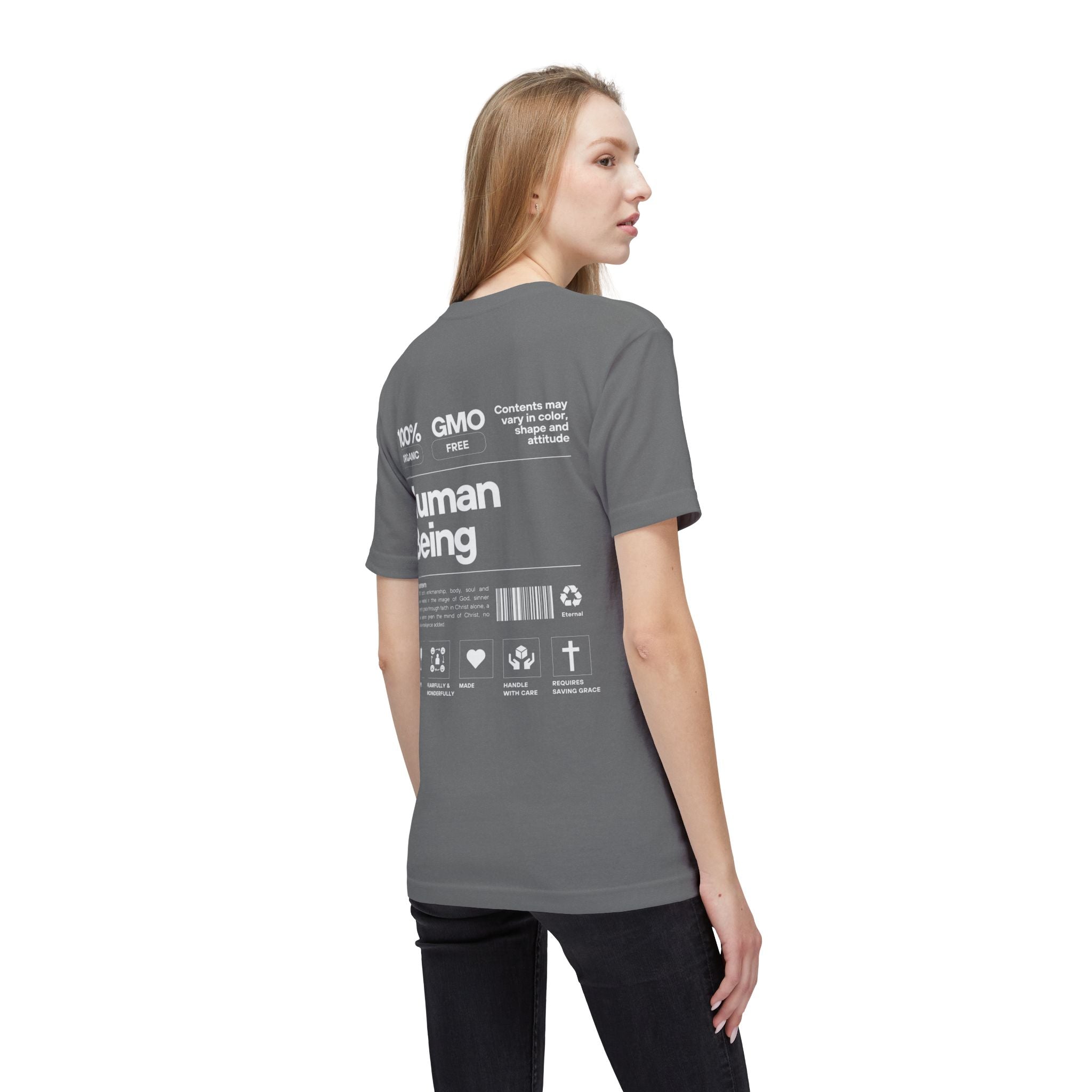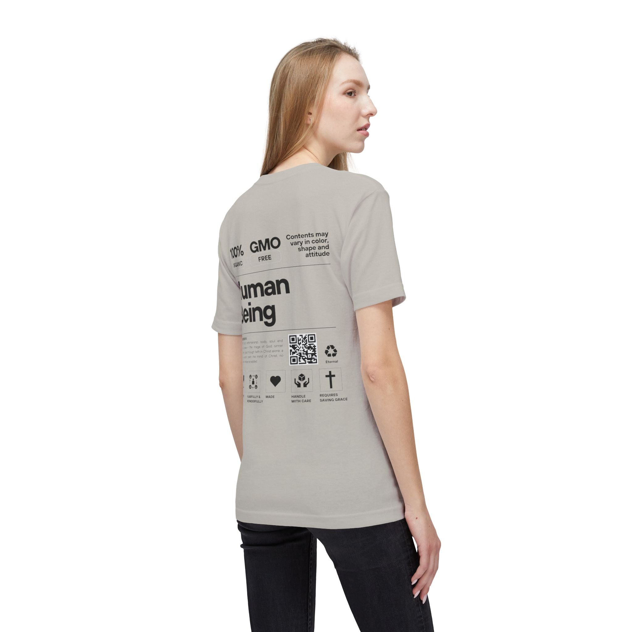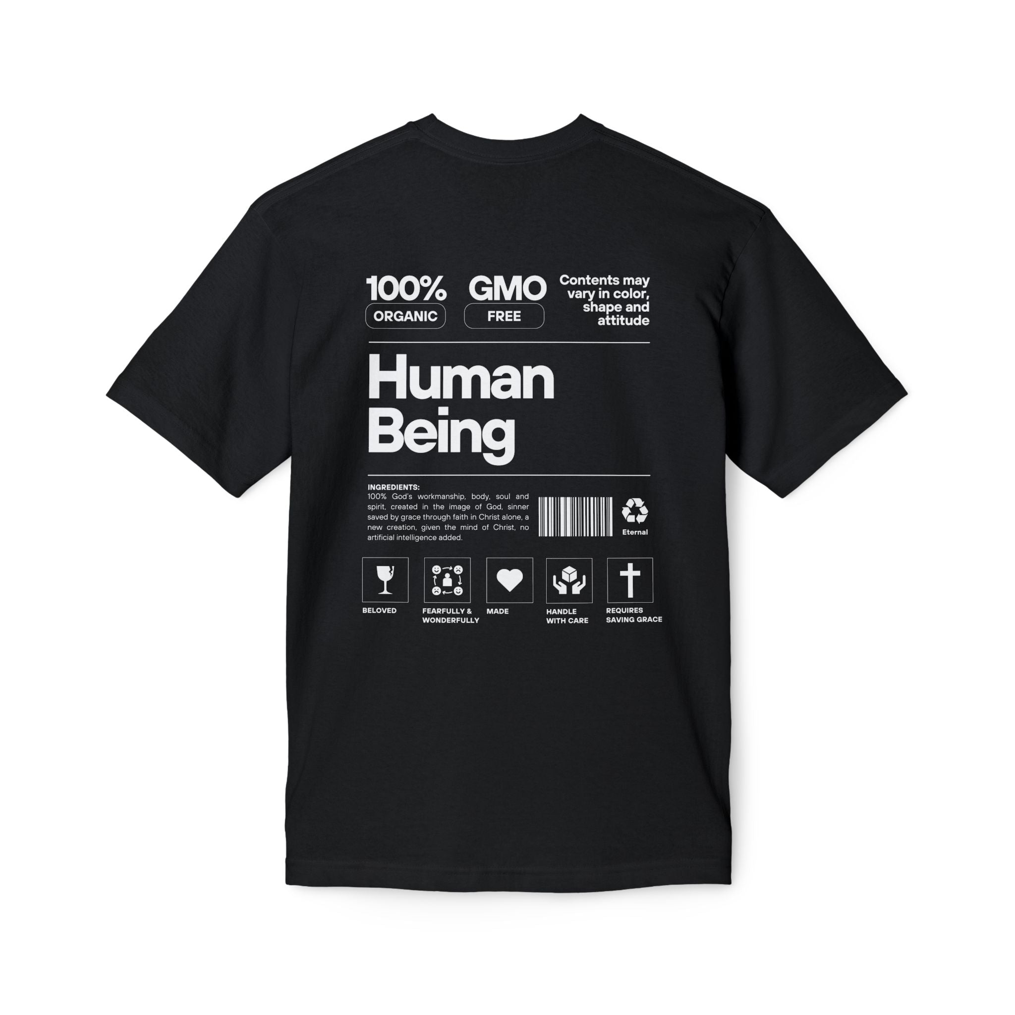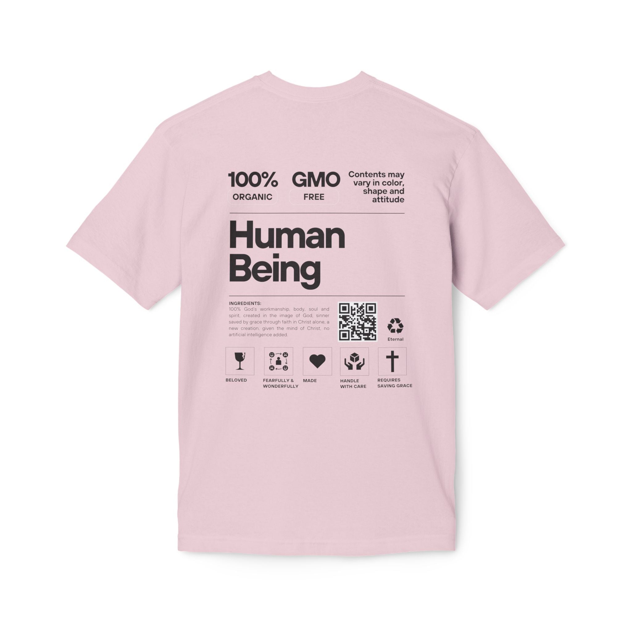 You'll love our latest inspirational t-shirt design featuring a graphical play on ingredient labels - this one for Being 100% Human, made in the image of God. An uplifting reminder we are fearfully and wonderfully made and beloved by God. Elevate your casual wardrobe with this unisex midweight t-shirt. Crafted for comfort and style, it embodies a relaxed vibe perfect for everyday wear, a quality staple in any wardrobe.